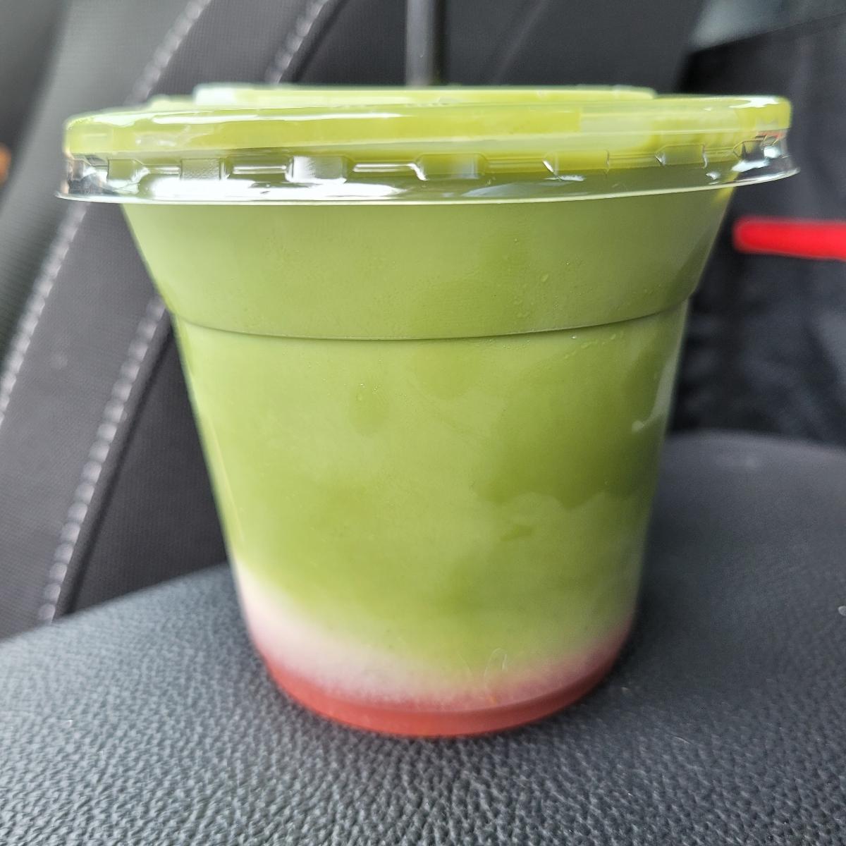 I ordered my latte with oat milk (almond also available) and half sweet. It was delicious! Very creamy oat milk, and the strawberry puree didn't overpower the matcha at all. đź§‹