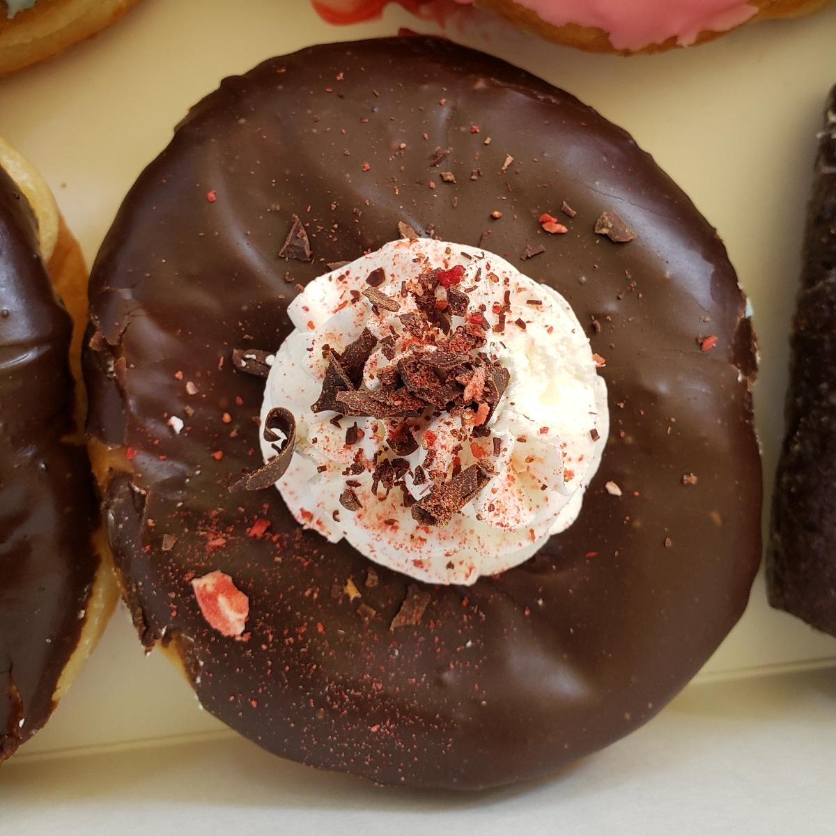 Two of my favourite things come together nicely in an unexpected way in this donut: the filling itself appears to be a mixture of chocolate and berry pudding. Is it my fave donut ever? No. Would I have it again? Is that even a real question??
