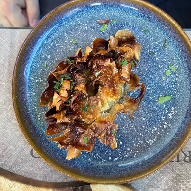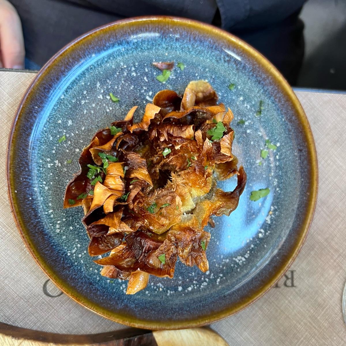 Carciofo alla giudia ,veramente buonissimo,un po’ salato ma super morbido all’interno e croccante nelle foglie.