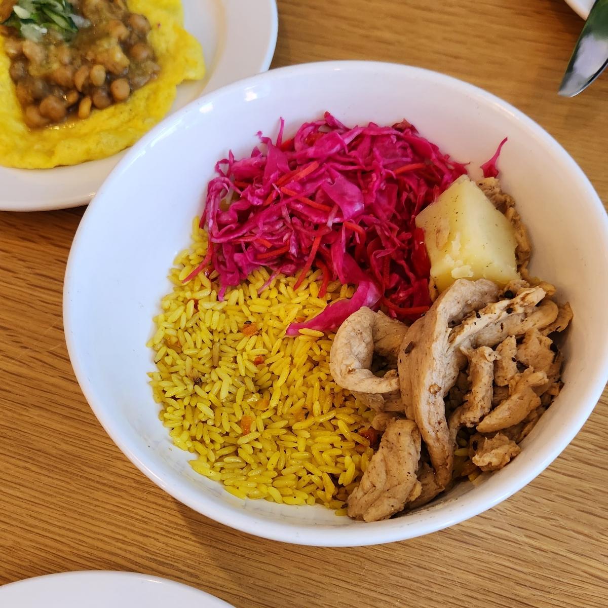 Took 40 min to prepare despite coming for restaurant opening for lunch. The rice and cabbage had a nice flavour but the soy meat was bland, as well as the random chunk of potato. The whole dish was dry and could use used some kind of sauce drizzle. I wouldn't order this again.