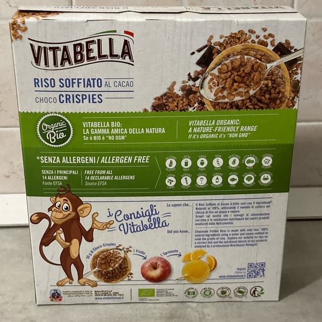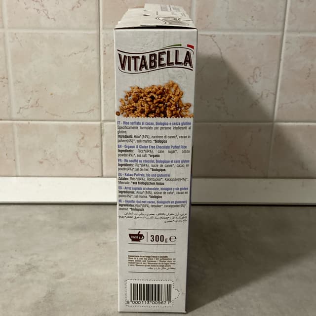 Riso soffiato ricoperto di cioccolato. Sono felice di aver trovato un’alternativa senza latte. Non compro abitualmente questo tipo di prodotto perché ha molto zucchero, ma avevo un ospite che fa colazione solo con questo cereale. Comunque ha gradito.