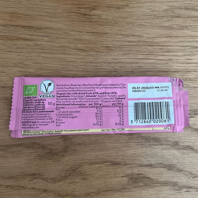 Raw Bite Protein Bar is a tasty and nutritious snack made with organic ingredients. It contains 11 grams of protein per bar and is free from artificial additives. This protein bar is perfect for those who want a sweet, crunchy, and protein-rich treat. It is made with a combination of dates, nuts, and protein powder, which creates a delicious and nutrient-dense bite. You can enjoy it as a post-workout snack or a midday pick-me-up without worrying about empty calories. Overall, Raw Bite Protein Bar is a great option for those who want a guilt-free treat that will satisfy their taste buds and fuel their body.