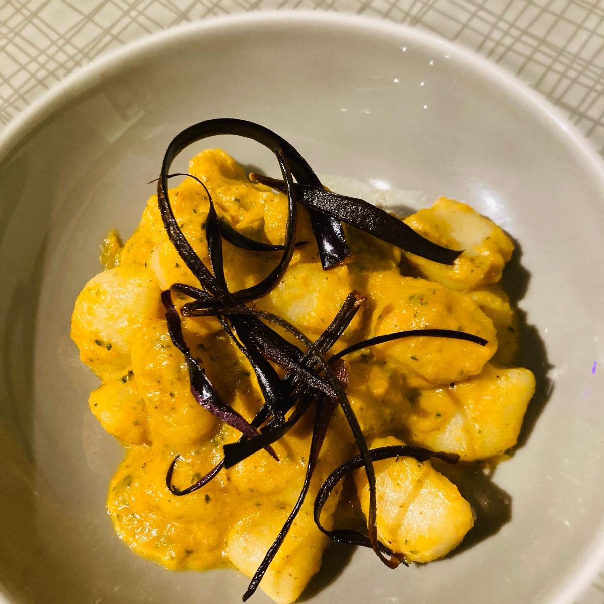Terza portata della degustazione. Diciamo che mi ha colpito meno degli altri due piatti. Gli gnocchi di per se erano buoni, decisamente freschi e fatti in casa. Un po’ blando il sugo. Erano serviti con delle croccanti strisce di buccia di melanzana che ho apprezzato particolarmente 😊