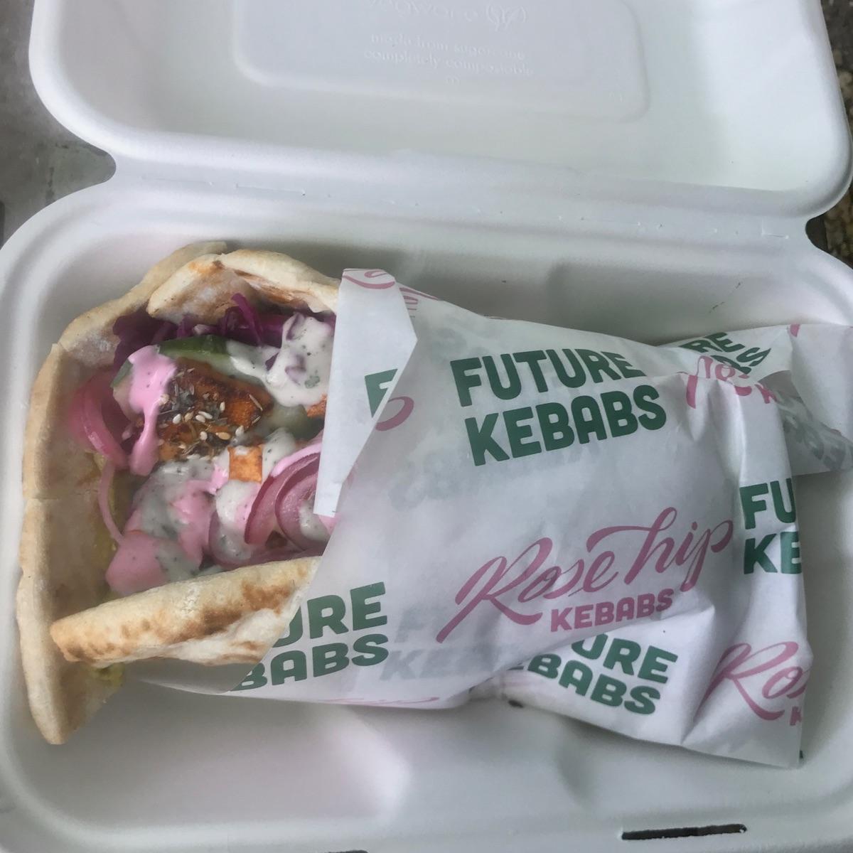 This place changed their name to RoseHip Vegan Kebabs quite recently. Menu now includes various types of #kebabs in lavash or pita bread, but overall less food options than before. This one comes in #pitabread, contains #marinatedtofu with zaatar spices, green #hummus, cucumber, marinated red cabbage and onion, pink garlic mayo sauce and tahini yogurt sauce. It’s as #flavorful and tasty as it sounds! Costs 7,50€, but it’s big, #nutritious and #filling so I guess worth it. #compostable packaging made from sugarcane.
