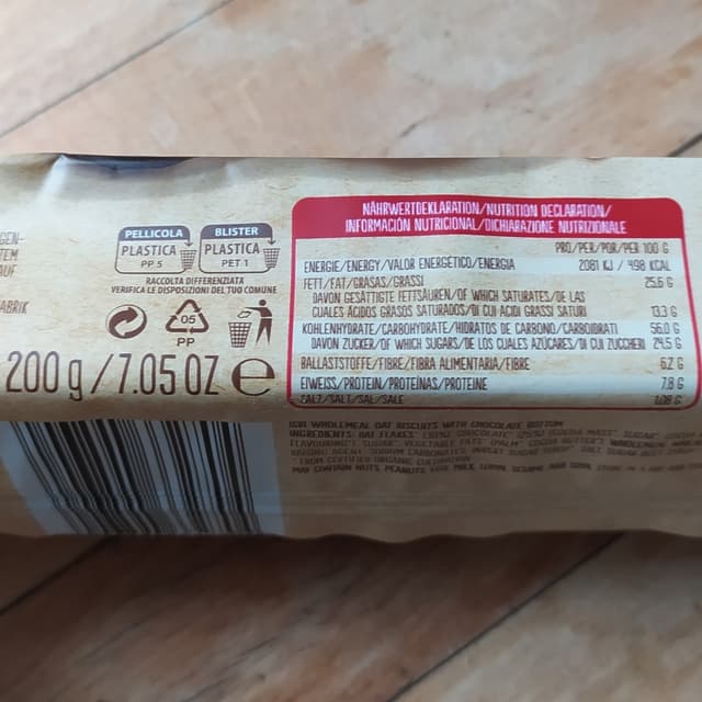 Bio Hafer Cookies are a delicious and healthy treat made with 100% fair trade and organic ingredients. These scrumptious cookies are packed with wholesome oats and a generous helping of dark chocolate, providing a rich chocolate flavor and an oat-based texture. They are perfect for satisfying your sweet tooth while providing essential nutrients. Whether you're looking for a tasty snack or a quick breakfast on-the-go, Bio Hafer Cookies are the ideal choice for a guilt-free indulgence. With positive reviews from customers, these cookies are sure to become a favorite.