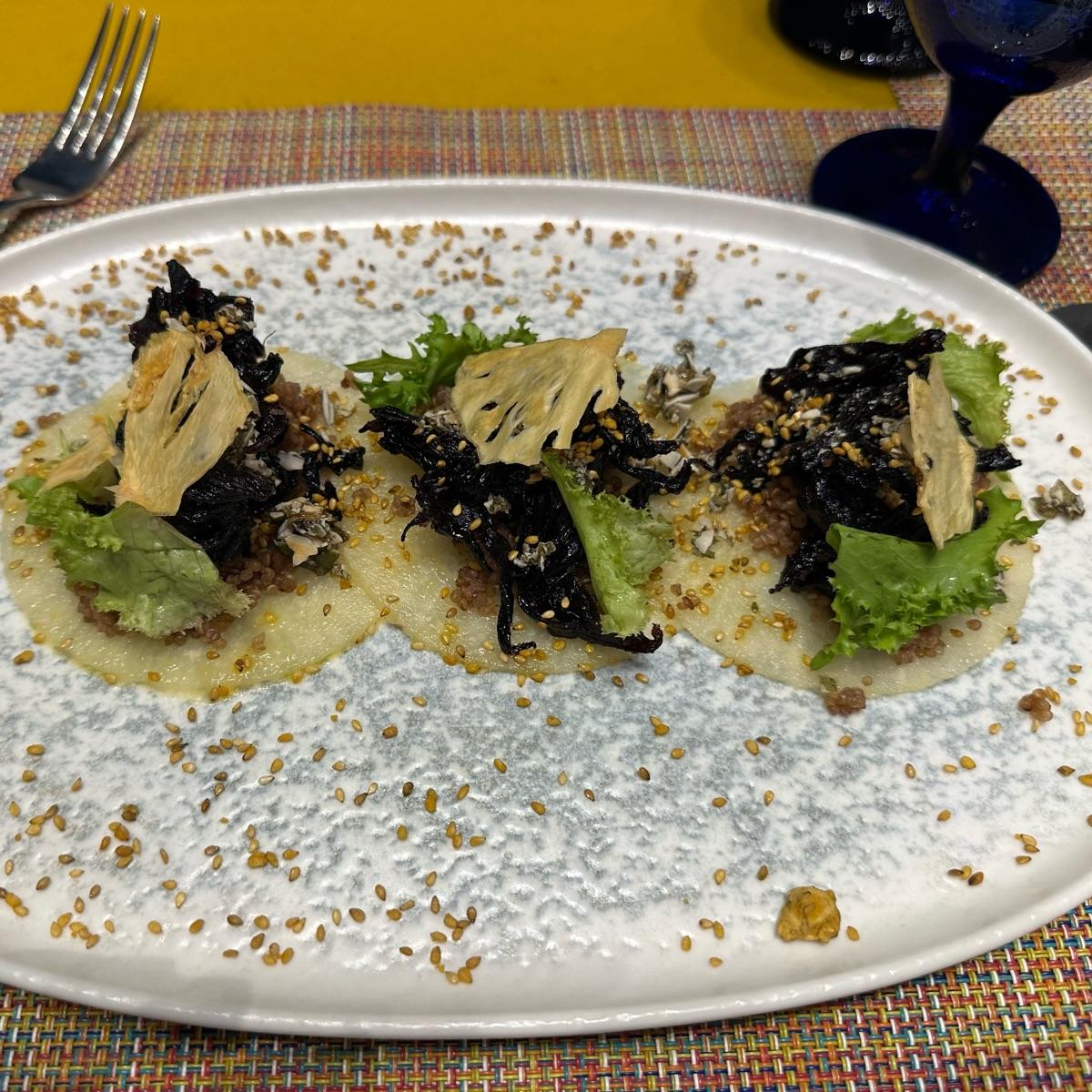 The experience from these tacos was lovely. So much flavor. Flor de Jamaica, quinoa, aguacate tatemado, semillas de girasol y ajonjolí garapiñado.
