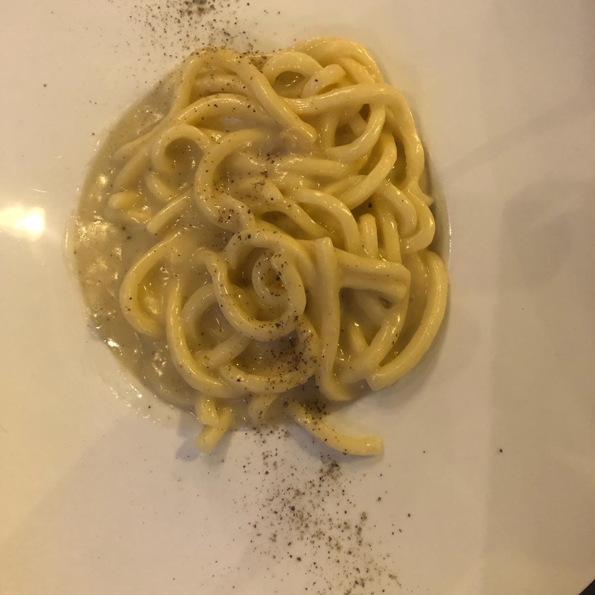 Ho molti dubbi su questo piatto, il cacio e pepe era troppo liquido e quindi non si attaccava alla pasta, gli spaghettini troppo lisci insomma è un piatto da rivisitare e migliorare assolutamente