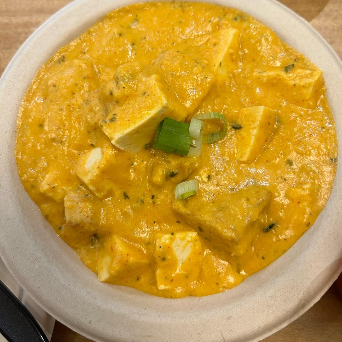 Mm I got this delicious creamy korma with medium spice, tofu, and potatoes. I also got an order of roti on the side and it came with a hardy order of basmati rice. The spice level was perfect, not too overpowering but not mild. The tofu and potatoes were chopped in very big portions so it was really filling. The korma itself was very thick and creamy (cashew based). I overall loved this dish! #indianfood #korma