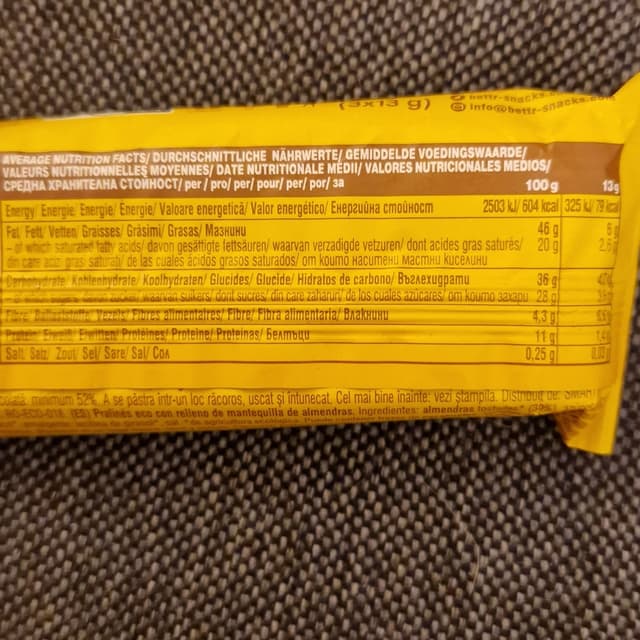 nom nom nom, as you know i am a sucker for the nut butter and chocolate combo. this one did not disappoint. very yummy treat. packaga contains three pieces.