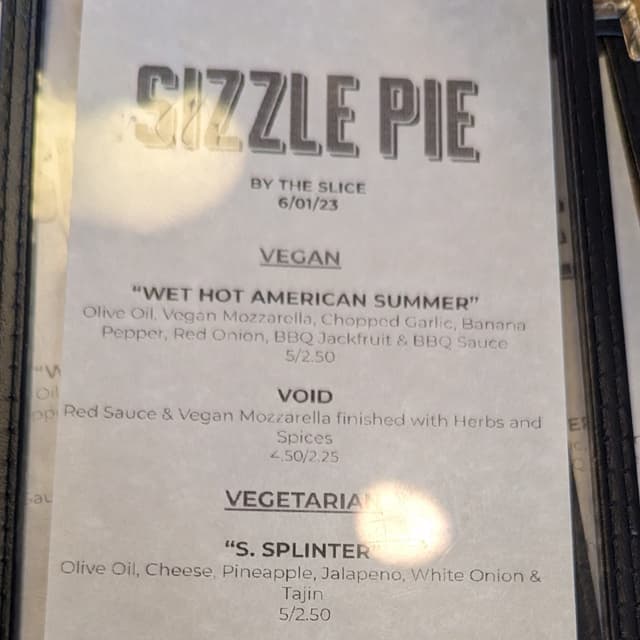 Had what I would call the "vegan plain slice" and it was great! The strange thing is that they don't have garlic powder here (it's a pizza place without garlic powder? Lol) but they offered me nooch so I took it! Never had nooch on pizza and it turns out it's pretty good! I definitely recommend