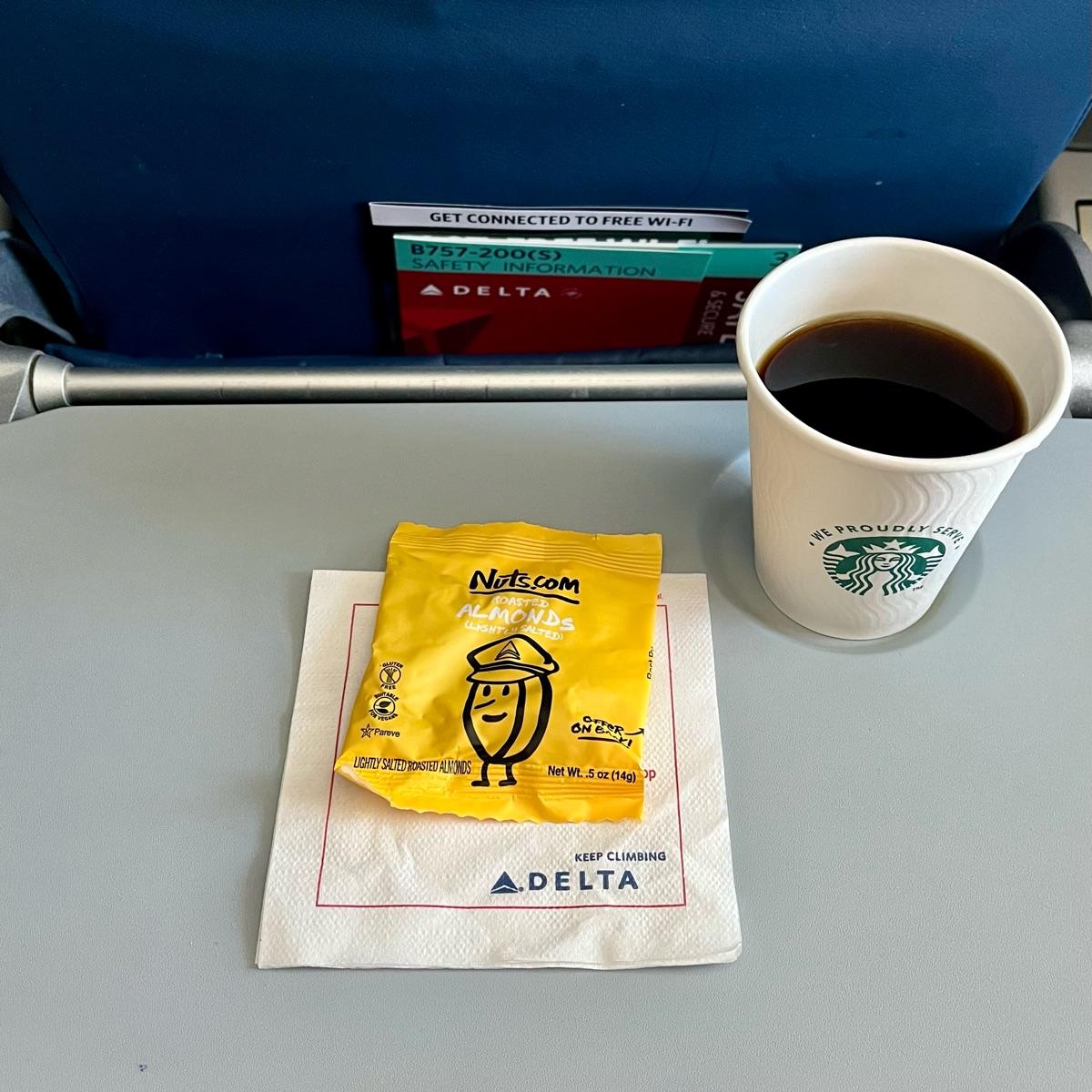 I was a bit perplexed by the inconsistent quality, though. The flight attendant handed me two packets, and as strange as this may sound, one was fine (crunchy and lightly salted, as promised on the package) and the other was not good at all. I wish I had snapped a photo, because the almonds in that bag were hard, visibly over-roasted, and excessively salty. I imagine it may have just been a bad batch, so I won’t hold it against them. Not something I’d go #nuts over, but definitely a decent start to the trip.