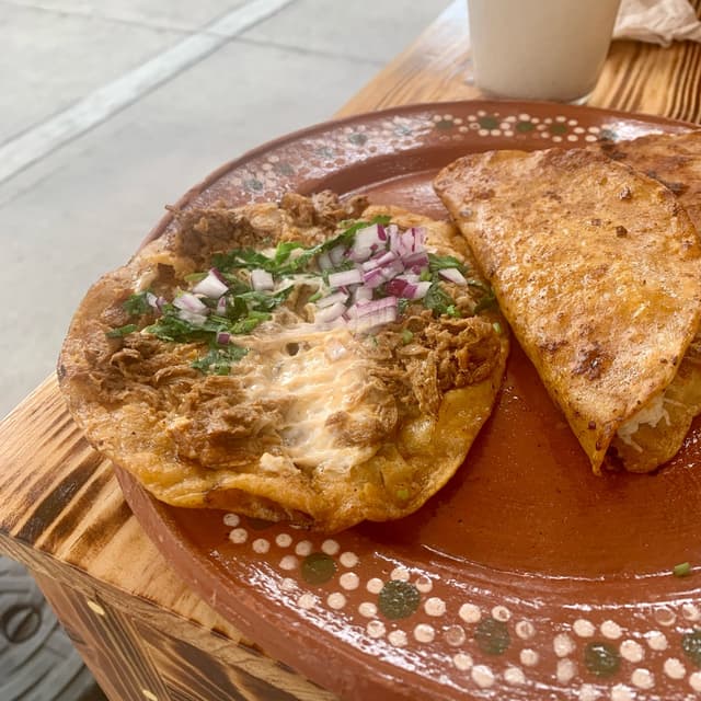 Los chicos de Mictlan siempre tienen especiales deliciosos los fines de semana como estas quesabirrias que son quesadillas rellenas de soya preparada estilo birria, con quesito gratinado, cebolla y cilantro. Además las acompañan con consomé de garbanzos que está riquísimo también. Síganlos por Instagram para que no se pierdan sus especiales y además de lunes a viernes tienen menú del día. Súper recomendable ☺️ #friendsnotfood #bekind #sincarneporfavor #soy #veganrestaurant