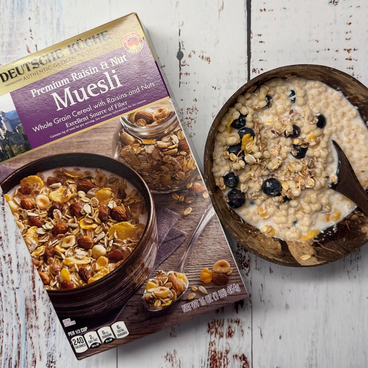Very nice hearty muesli naturally sweetened by raisins! These would probably be a good addition to muffins or a baked oatmeal 🥣! I mixed with some quinoa puffs and enjoyed as a cereal with fresh blueberries 🫐 for a late night snack!