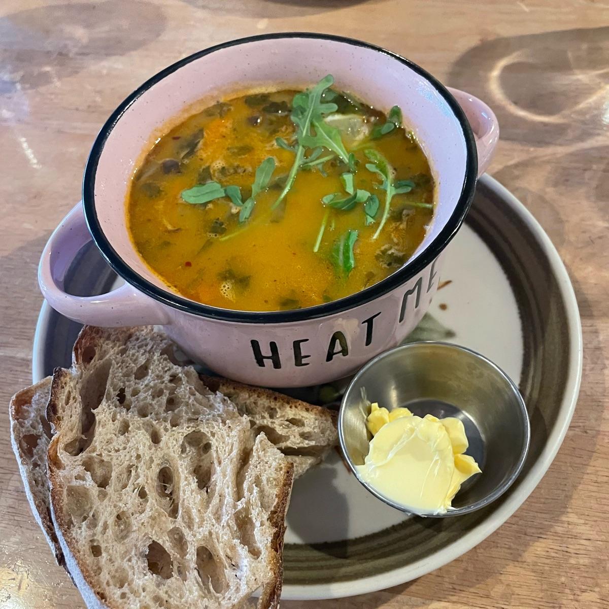 Soup of the day was Thai red curry soup with sourdough bread! You can’t see but it had chickpeas and veg in so was quite filling :) another delicious dish from Mad Cucumber!