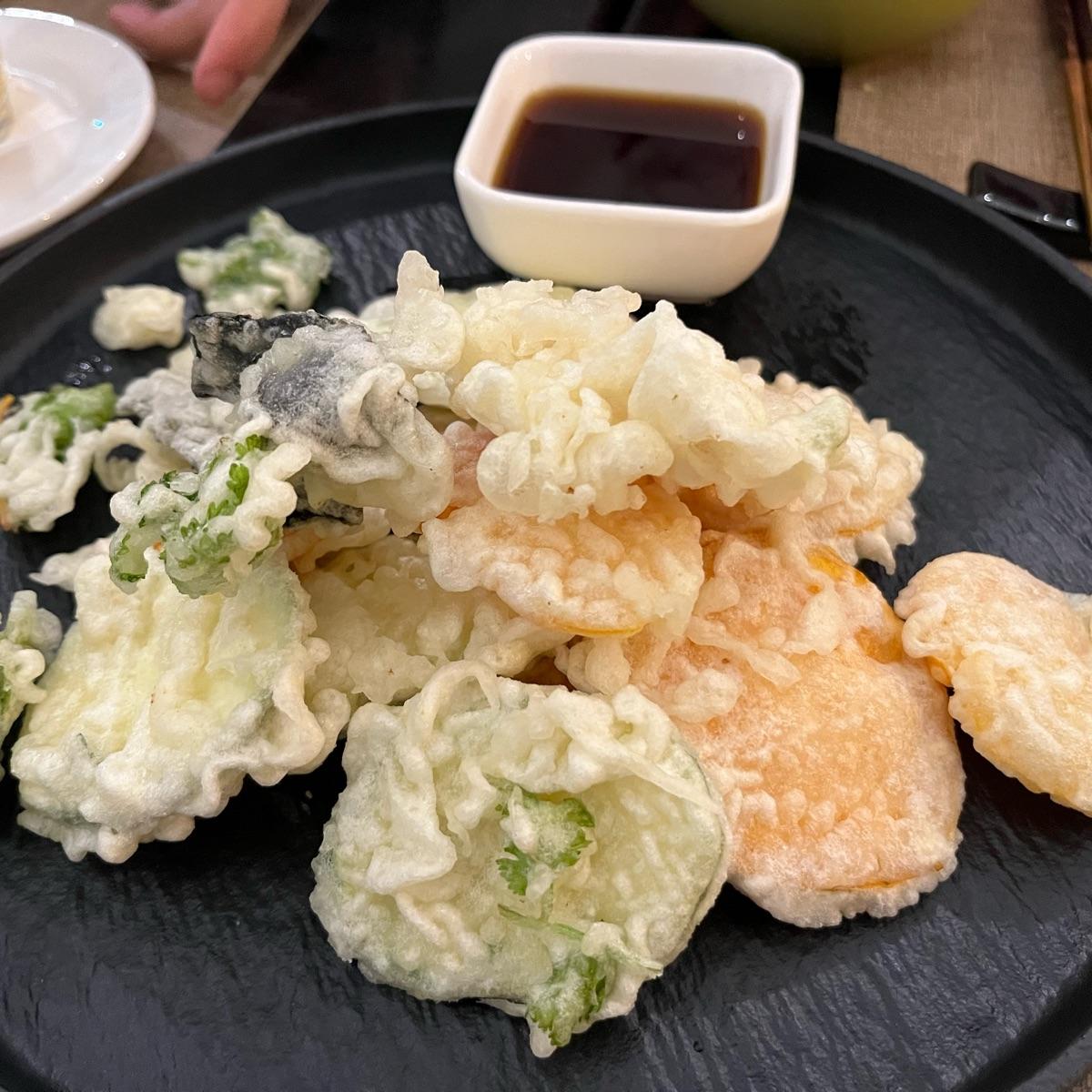 La tempura di verdure invece è stata abbastanza deludente per l‘omogeneità delle verdure (zucca gialla, zucchine, melanzane), la sovrabbondanza di zucca gialla 🎃 rispetto al resto, solo 3 pezzetti di melanzana di cui uno minuscolo, e il rapporto qualità prezzo: 15 soldi ci sono sembrati tanti per quel piatto.