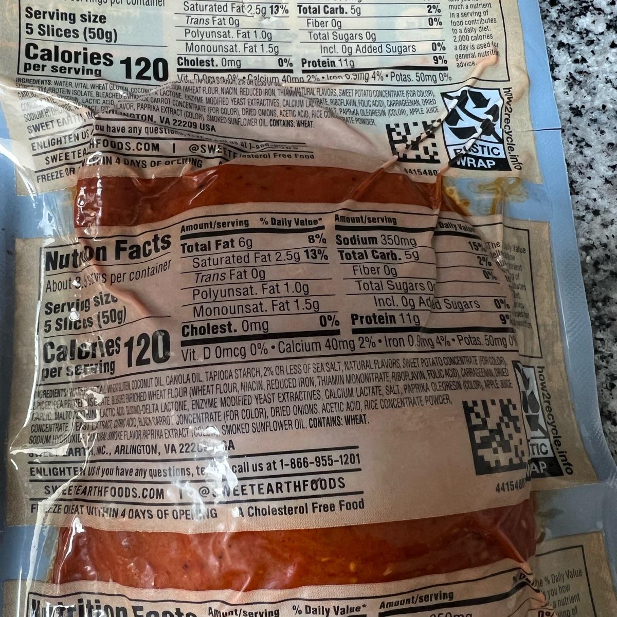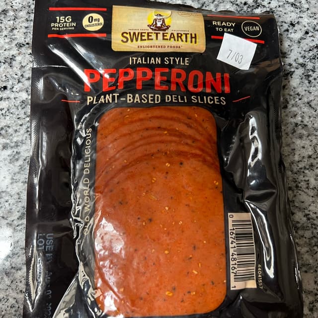 This Sweet Earth product is a nice option for homemade pizza! The slices are large, but they are tasty. Not too spices but a nice Italian flavor. I also use in an Italian pasta salad. #vegan #veganisnotscary #sweetearth