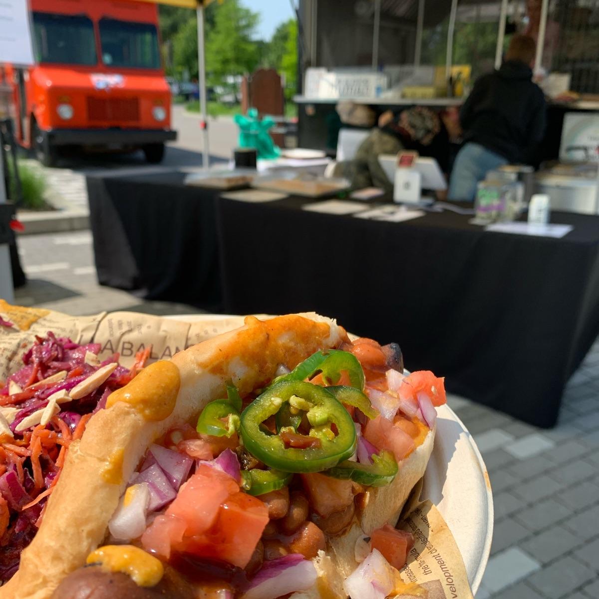 Lots going on on this loaded vegan hot dog. I love that their food truck offers a couple different options for plant-based meat, something for everyone. I really liked the cherry slaw that came on the side, which was colorful and refreshing.