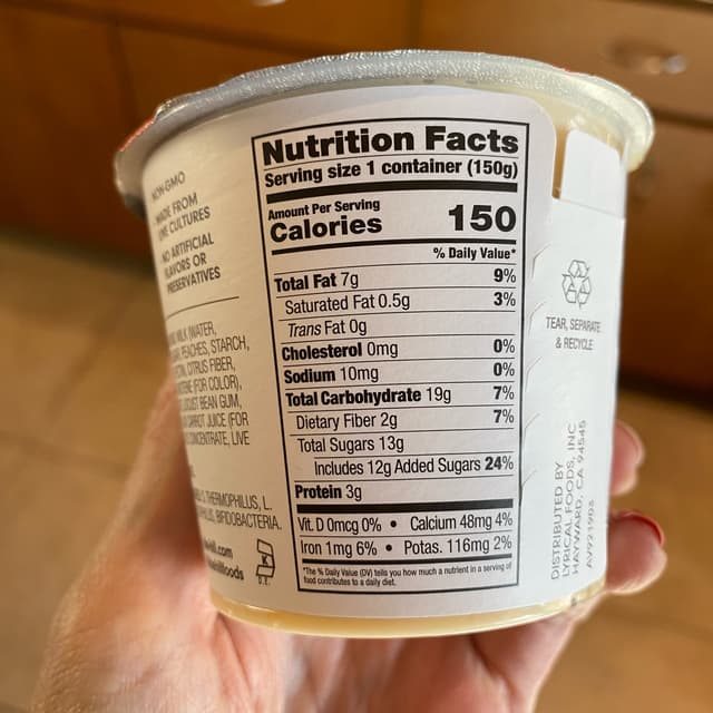 I’ve had it in my mind for a while that the only Kite Hill yogurts I liked was their Blissful coconut line (RIP 😭) but I hadn’t had their original almond yogurts in many years, the packaging said “now creamier” and it was only $.89 so I decided to give this peach flavor a try.