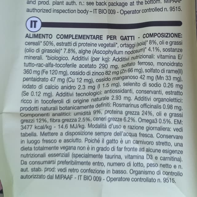 400 grammi di crocchette per gatti a base di alghe. Acquistate da NaturaSì di via Millelire a Milano a 5,60€. Sono state apprezzate: delle crocchette versate nella ciotola non ne è rimasta neanche una 😻