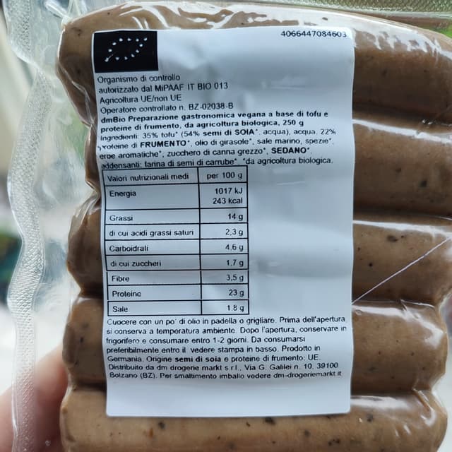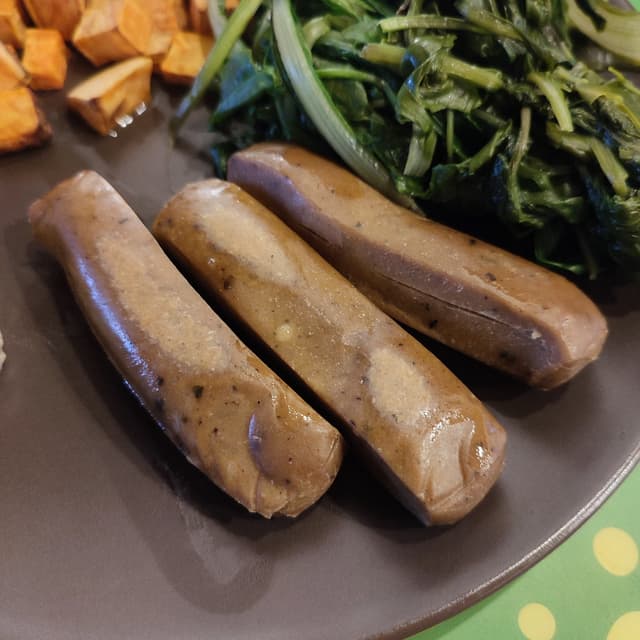 Questi simil wurstel sono proprio un NO. Non che mi aspettassi che mi piacessero, visto che non mi sono mai piaciuti i corrispettivi non vegani di questo tipo di prodotti. Li avevo trovati in un dmBio in Trentino e aspettavo l'occasione di usarli in qualche ricetta dove potessero starci bene ma in realtà questa occasione non è mai arrivata e per la vicinanza alla scadenza li ho mangiati semplicemente cotti in padella. Il sapore non mi è proprio piaciuto e nemmeno la consistenza che ho trovato asciutta. Forse starebbero bene in dei salatini di pasta sfoglia.. ma non sarò io a provarli perché non li ricomprerò!