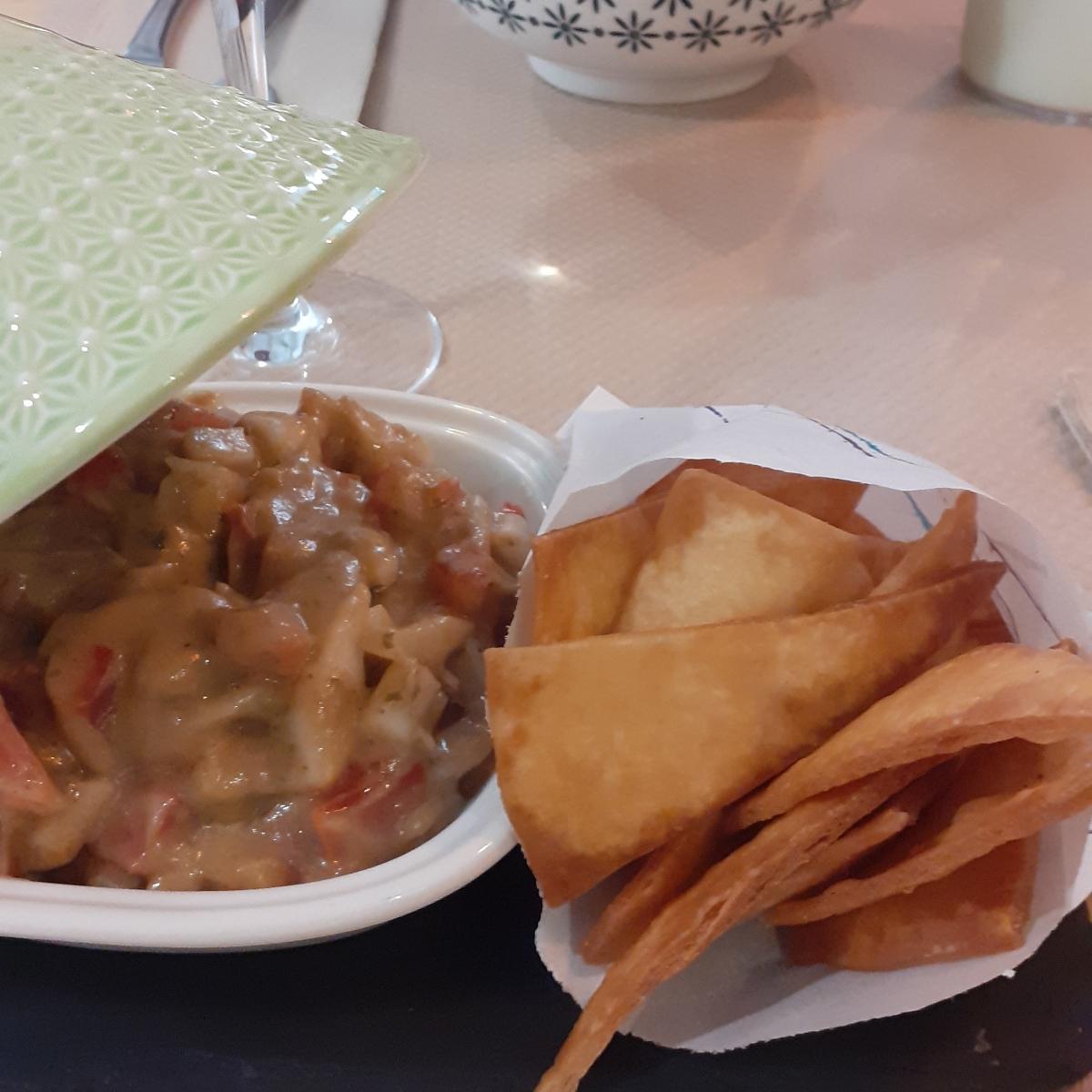 El guacamole de berenjena está muy rico, la berenjena le da muy buena textura y los nachos súper crujientes. 😍