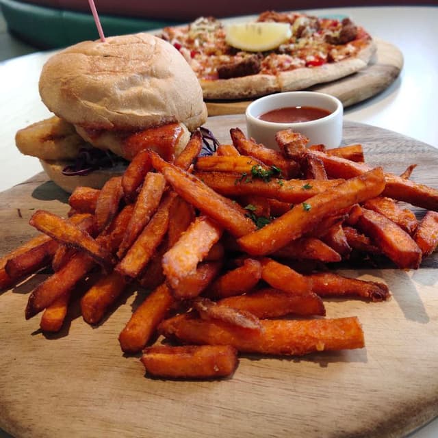 The fillet tasted good on itself and with the sauce as well, which is a little sour and spicy. The sweet potato fries were awesome 😋