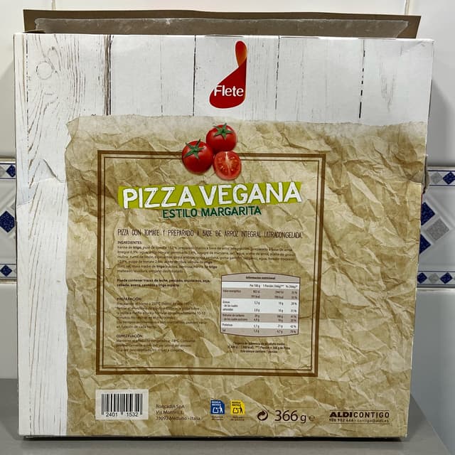 Está muy buena de sabor. Me ha sorprendido el sabor y la textura del queso vegano a base de arroz integral. A diferencia de otros quesos veganos, este no tiene una textura pegajosa. La compré en Aldi y el precio está muy bien.
