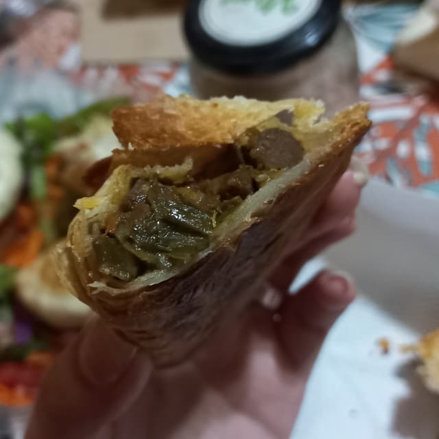 Vienen 3 gustos: jamón y queso, carne y de hongos. La de hongos un 10!!
