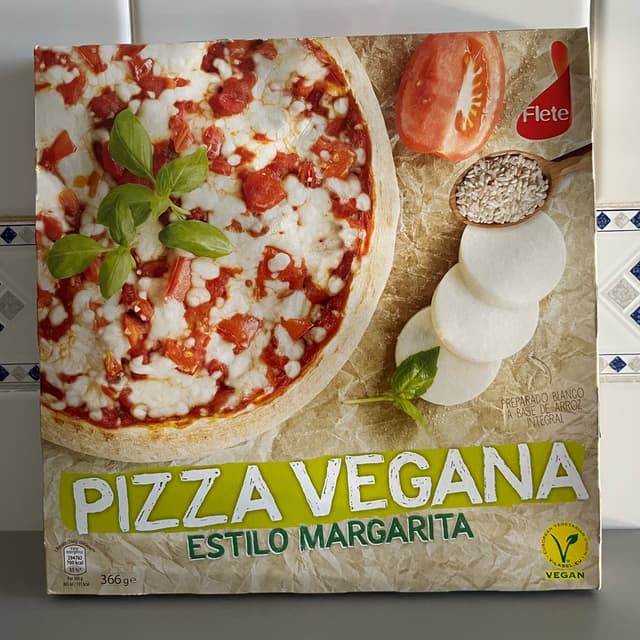 Una pizza con un queso muy logrado a base de arroz integral. El queso que es lo que predomina tiene una textura suave y no se pega en la boca como en otras pizzas, queda con textura y efecto de queso derretido. El sabor es suave y destaca la salsa de tomate que en mi opinión está muy bueno. A pesar de que sale albahaca en la foto de la pizza, esta no lleva, una pena ya que le daría el toque que le falta. La masa está crujiente y el borde queda perfecto.