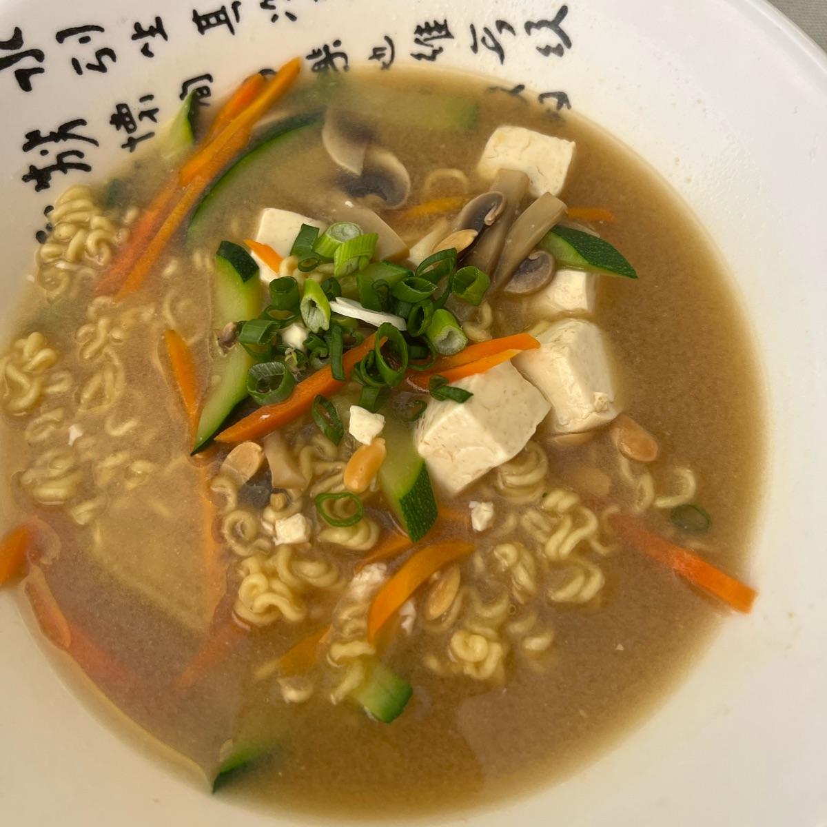 Piatto decisamente poco estivođĽšramen con tofu e verdure; si può scegliere livello di piccantezzađ