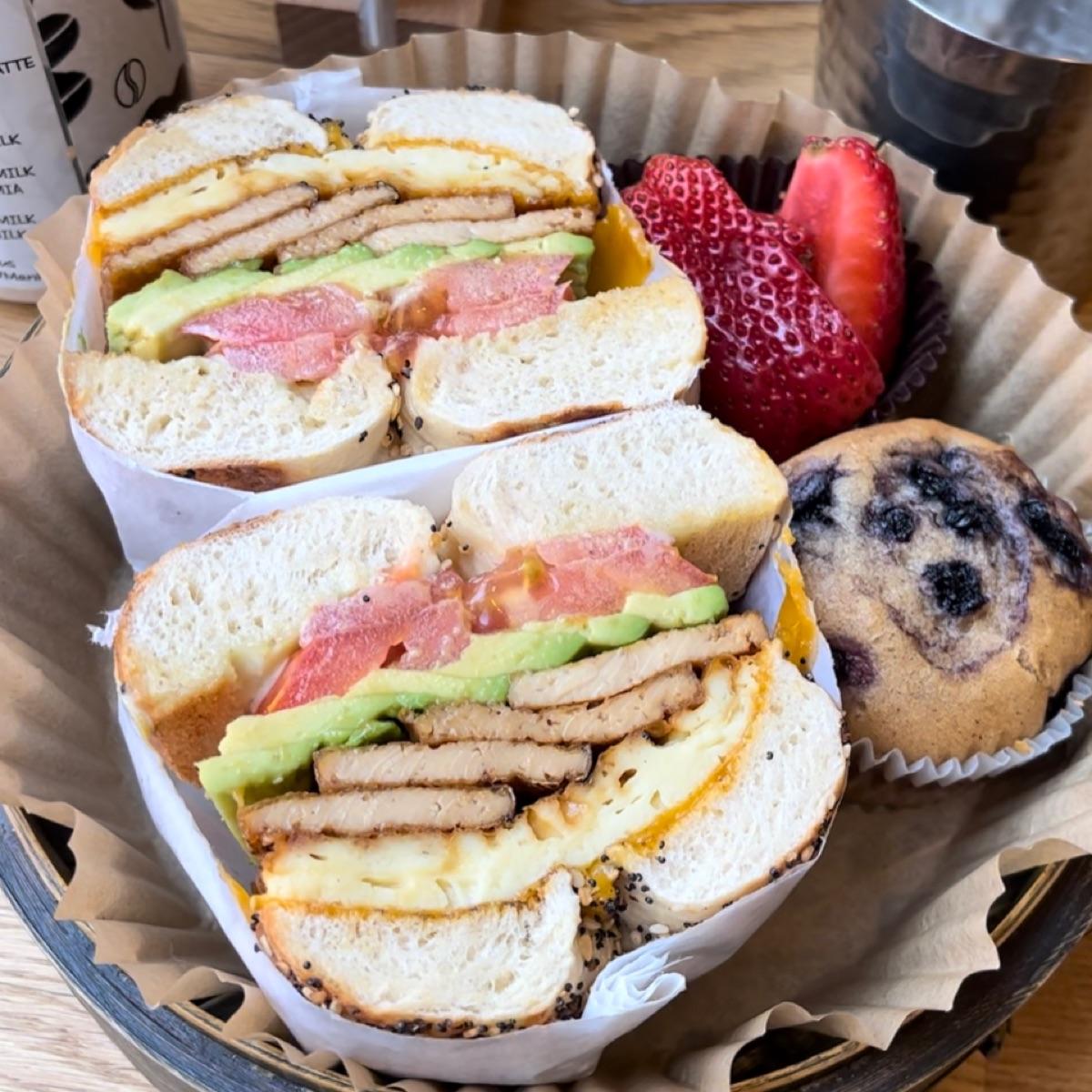 This bagel is delicious- 100% recommended! The two sides were also great- quality strawberries and a perfectly baked little blueberry muffin. If you are arriving to NYC and need breakfast/brunch- this is the place! This meal filled me up for a day in the city. Plus, the restaurant staff were welcoming which felt nice after traveling. I loved this breakfast!