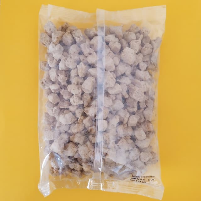 Encontré en oferta esta soja texturizada gruesa. En principio tenía la idea de hacer pinchitos a la barbacoa 🍢🔥. Yo creo que hubiese quedado rico.