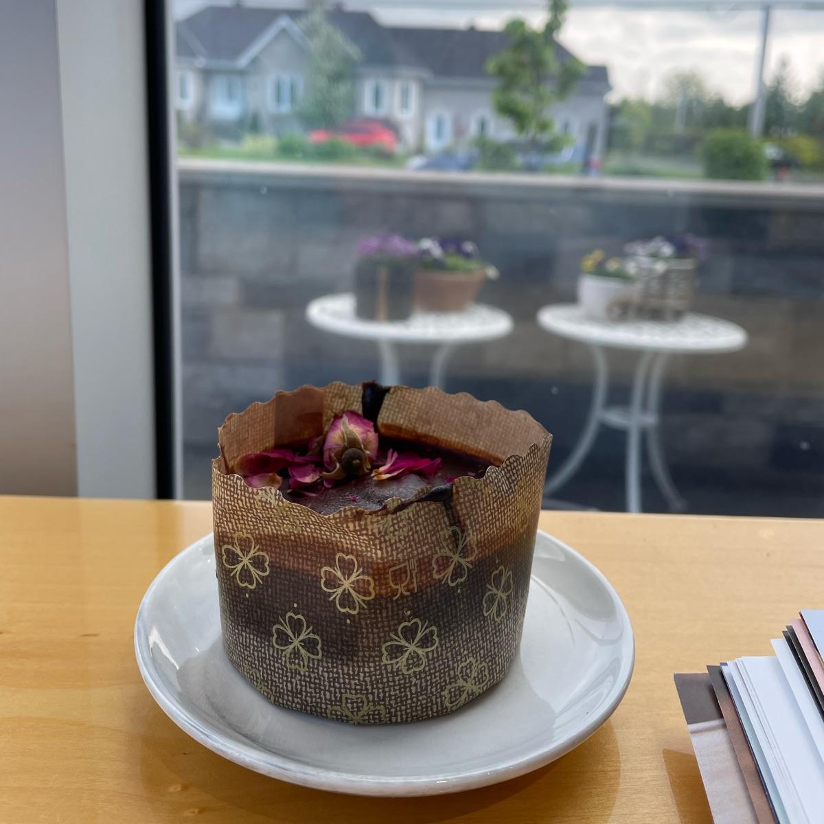 This chocolate tarte was delicious! It was just as good as expected. The cafe had a small dining room with some indoor seating if you want to dine in. I would definitely go back for this! It was a chocolate based cake with a chocolate ganache like topping with beautiful dried flowers. #cafe #dessert #veganquebec