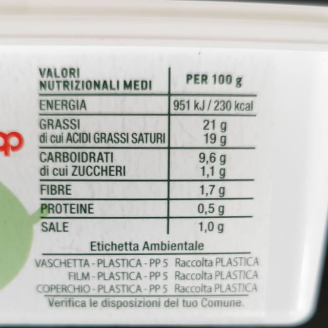 Per me il sapore di questo simil formaggio non è malissimo, acidino, forse un po' troppo salato ma la consistenza proprio non va. Credo che sia a causa dell'agar agar, avete presente quando sbagliate le dosi dell'agar agar nel preparare la panna cotta? Ecco è così, troppo denso, tipo budino venuto male, forse dall'ultima foto lo si può intuire. I valori nutrizionali poi proprio non sono un granché pochissime proteine 0,5g e tanti grassi saturi 19 g. Confezione in plastica 😞. Diciamo che nell'ambito di ricerca di nuovi prodotti si poteva fare decisamente meglio. Non lo ricompreró.