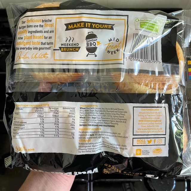 I was so surprised to see this four pack of clearly labelled vegan brioche buns! The companies are learning.