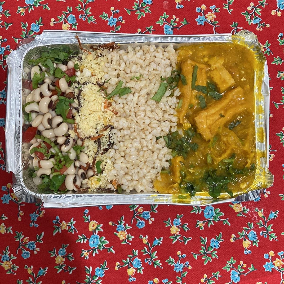 Acompanha feijão fradinho super bem temperado e uma farofinha crocante , deliciosa ! Mais um prato aprovado do Urbã ❤️ @ranchodosgnomos #ranchodosgnomos #casadoconsolador 💙🙌🏼🌱🌎🐻
