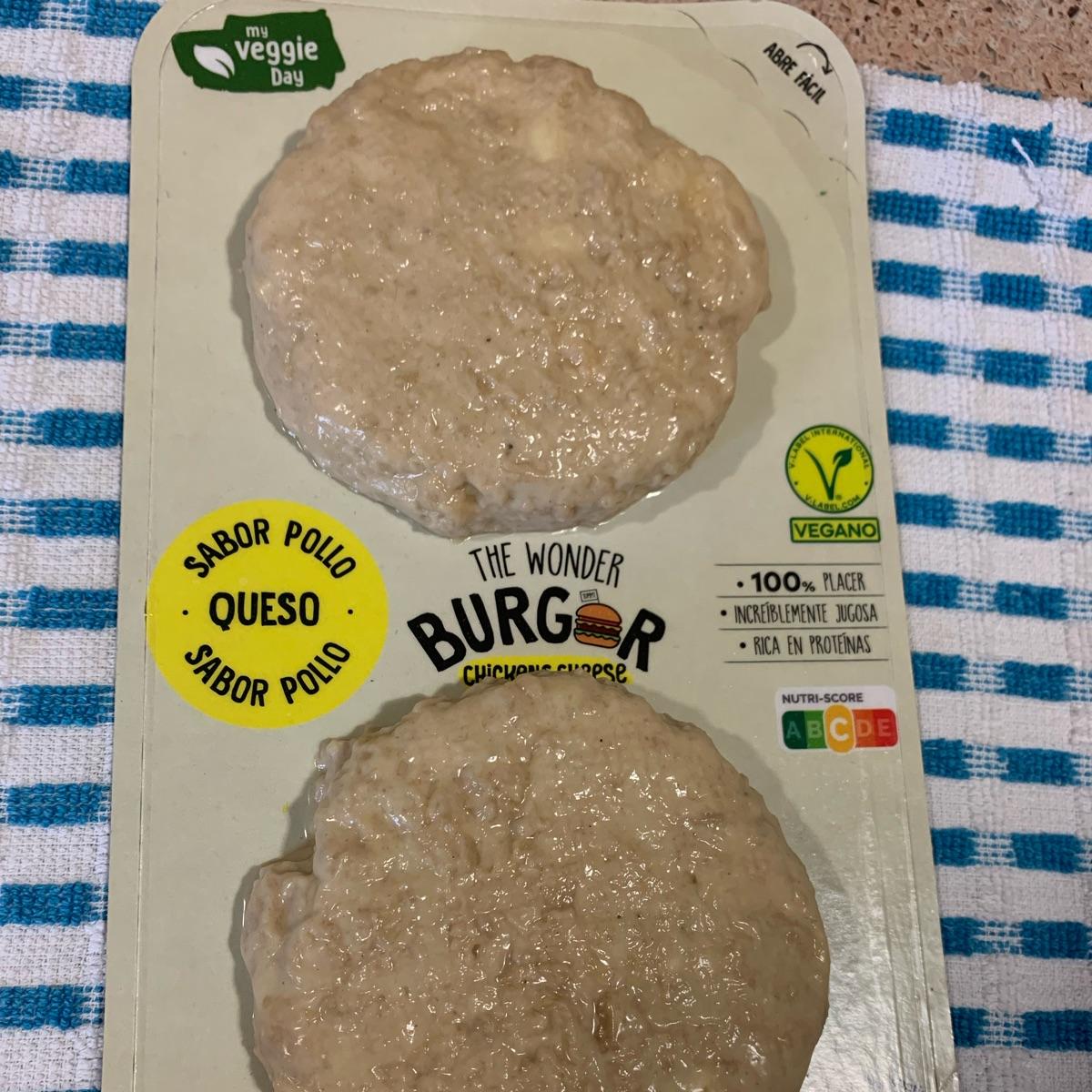 Hamburguesa #vegan a base de proteína de soja con aceite de oliva extra virgen 8% con sabor a pollo y queso #veganisnotscary