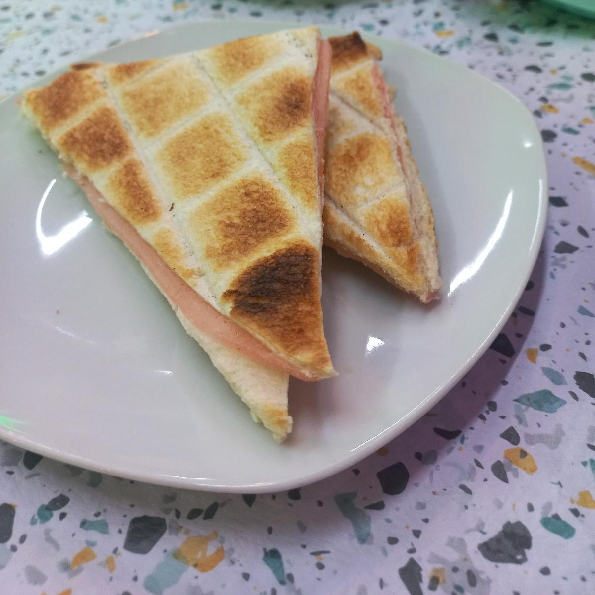 Tostado riquísimo el queso y el jamón están buenos.
