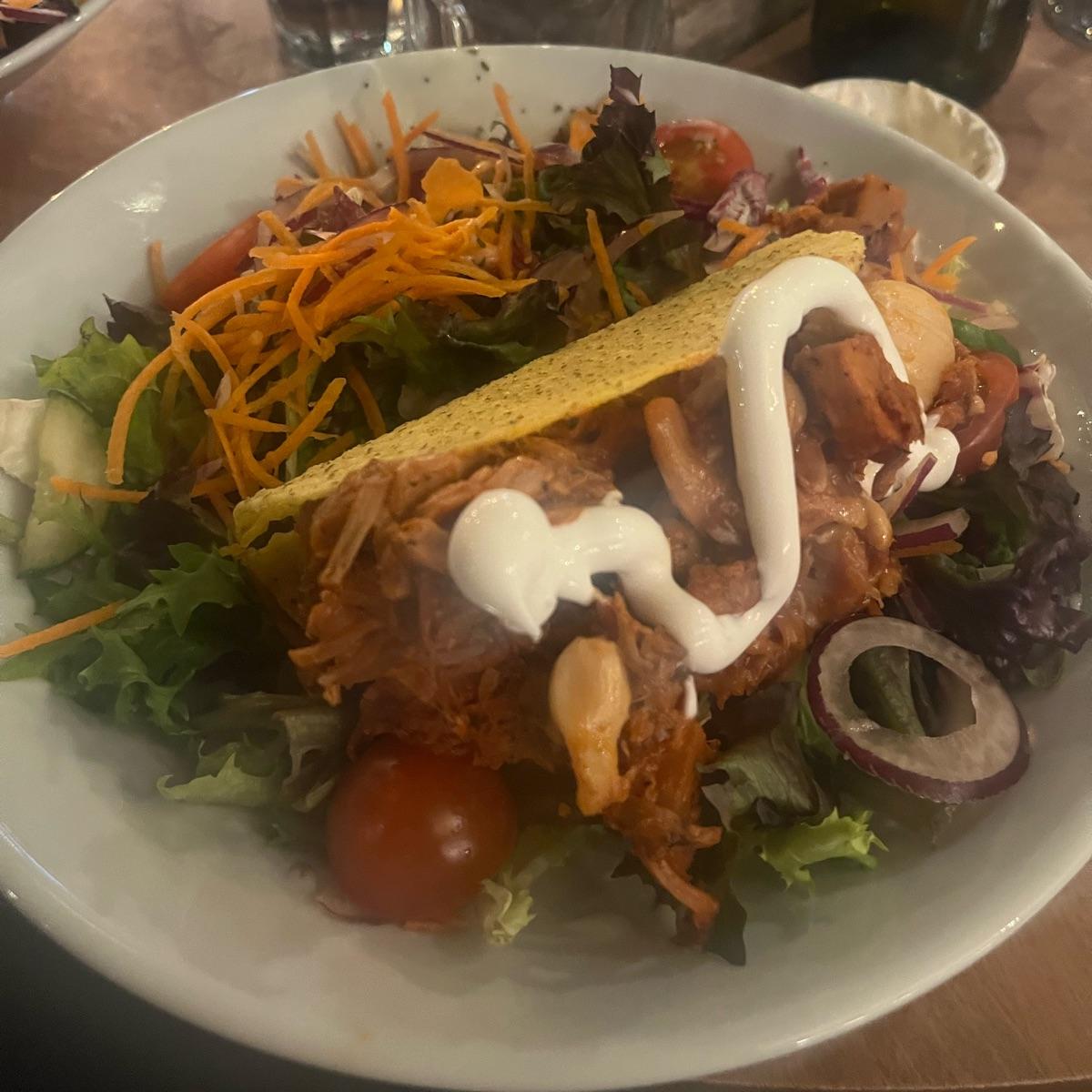 Hmmm. On the one hand this was incredibly tasty and I’m so glad for an option like this somewhere so rural. On the other hand, why is a dish called ‘jackfruit tacos’ served with only one taco…it had a huge salad underneath so they should just call it a jackfruit taco salad