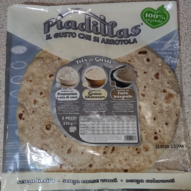 Piadine tre gusti perfette per le #wrap. Gusto delicato, da condire a piacimento, io solitamente gli metto la rucola, lo stracchino e l'affettato vegan.#vegan #piadina