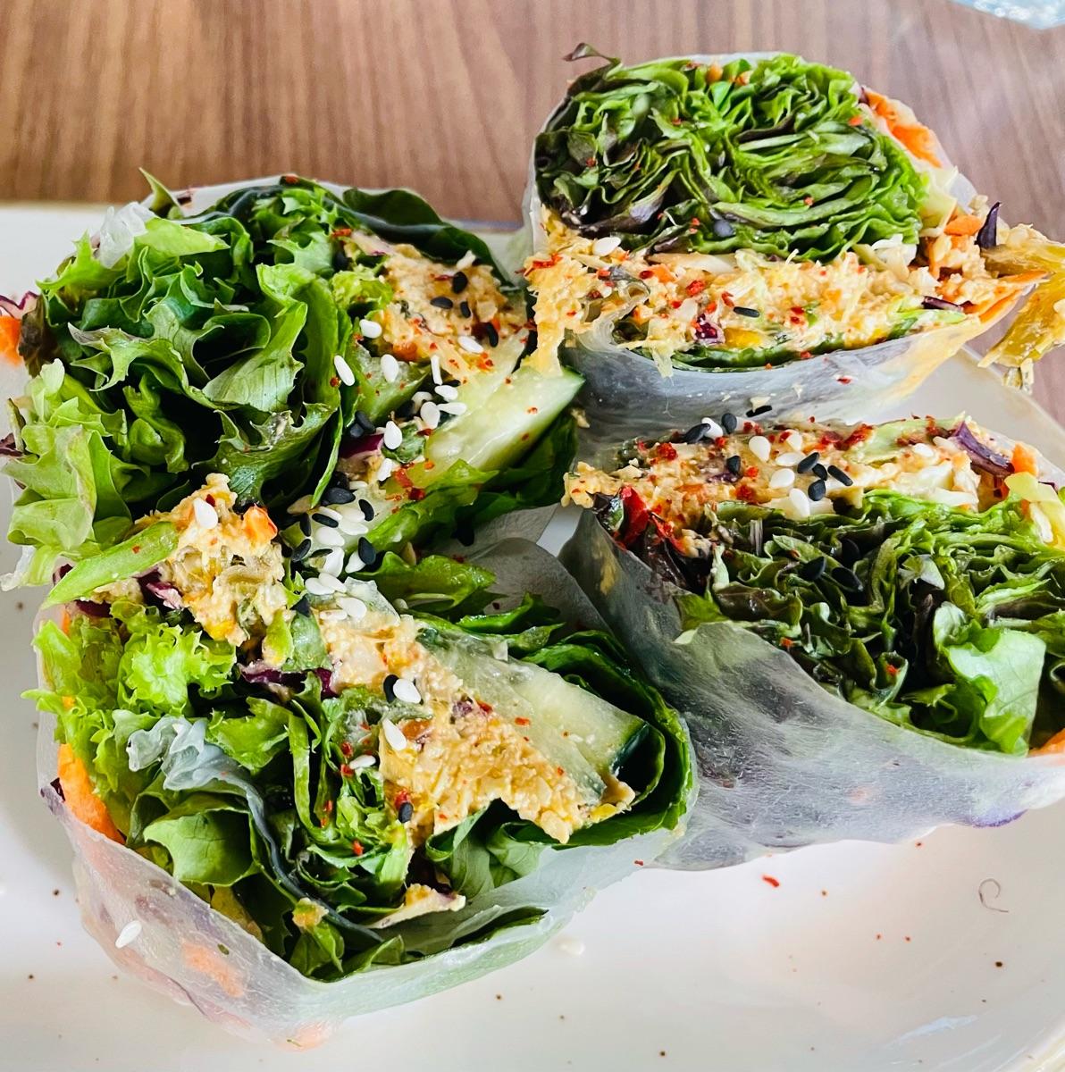 These spring rolls with peanut sauce were the hit of my lunch at Avo in Nashville. Avo is so pretty inside. It’s also in a cute area with a few other things to do. Everything at Avo is vegan! 🥑 #dentalandlentils #springrolls #nashville