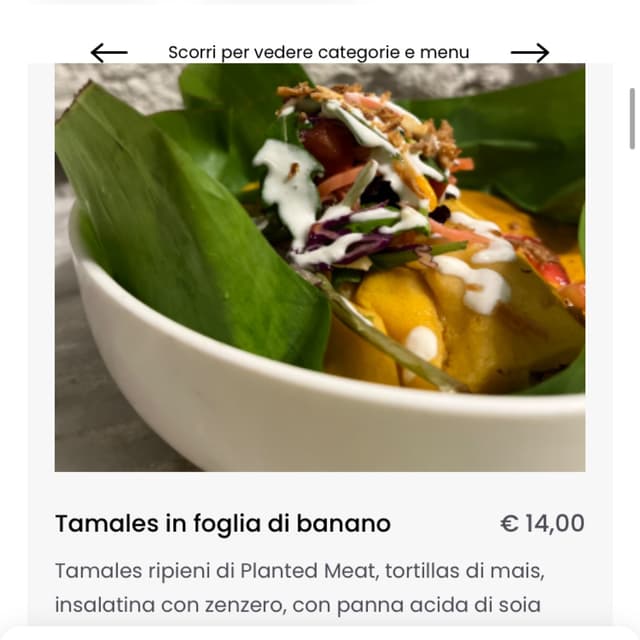 È un piatto molto particolare, la salsina era davvero molto buona, mentre la carne finta non mi piaceva tanto, però complessivamente era buono.