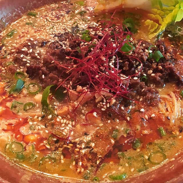 This is my favourite ramen place in Berlin, and I'm just in love with their tantan. The portion is huge, with so many toppings, and the spiciness is just perfect to me. There is a huge quantity of noodles and vegan mince and I love this!