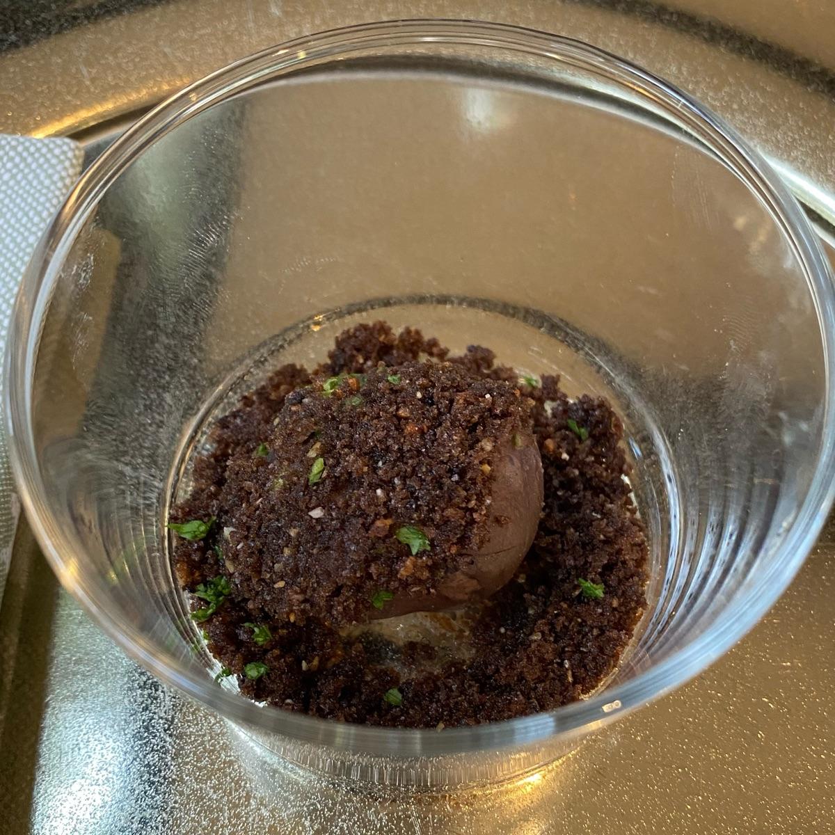 Finché aspettavo mi hanno portato questo #fungo in bicchiere, ricoperto da quella che se non ricordo male han definito “terra” (o sabbia?!).. un trito di #olive e spezie, una roba golosissima!!