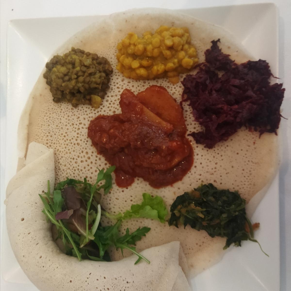 I went there on a weekend, which is when there is a buffet. It's not a vegan restaurant but it's very vegan friendly since the bread (injera) is vegan and there are a bunch of stews and salads that are plant based. It was reaaaally good, it was my first try of Ethiopian cuisine and it definitely made me want to try it at home! Making the injera would be difficult, but I can buy it from the restaurant and then make everything else at home 🤔