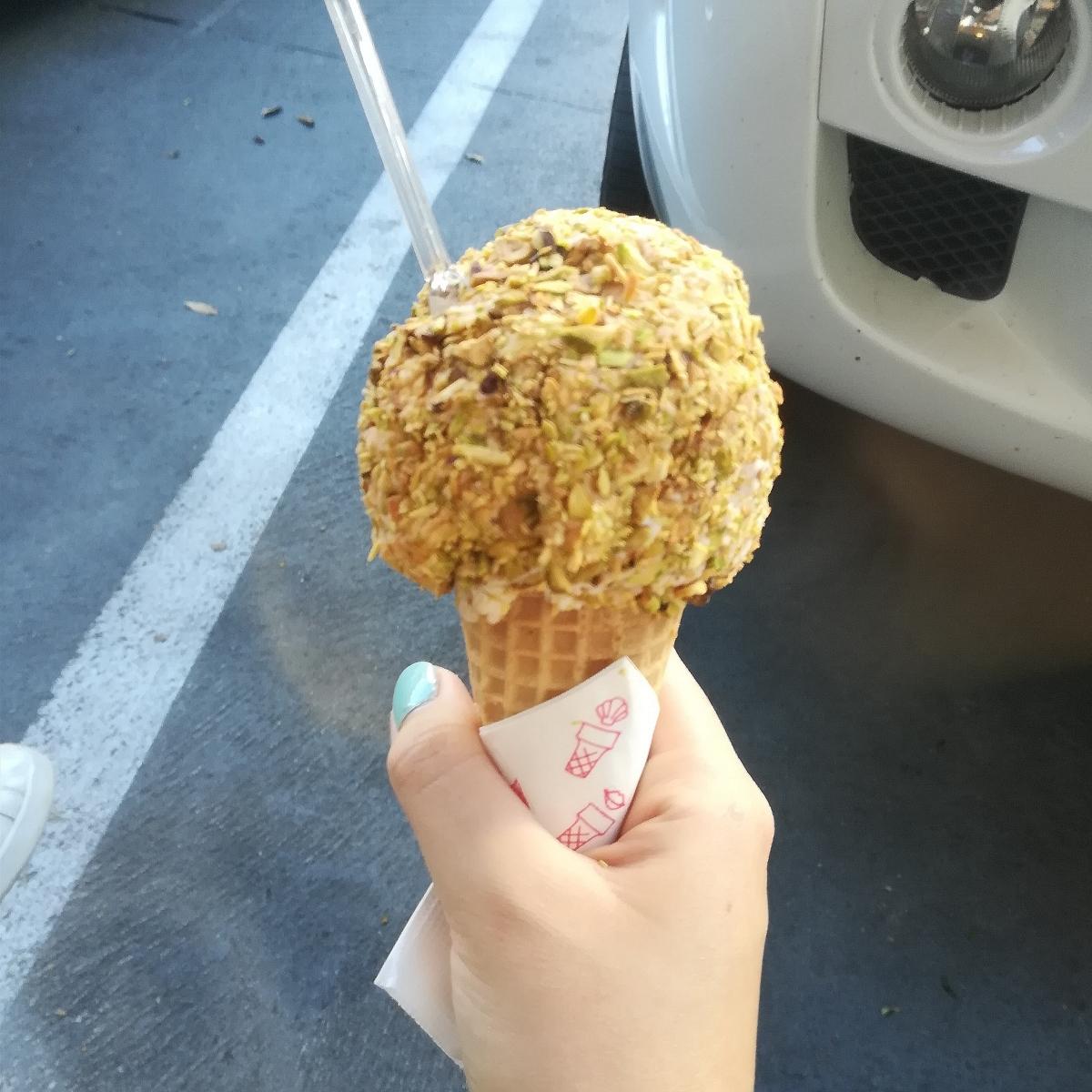Outro ponto interessante que é típico do Líbano é a cobertura de pistache (pedaços de pistache) que você pode acrescentar por cima. Também há a opção de colocar chocolate ou chantilly, mas creio que não seja vegano.
