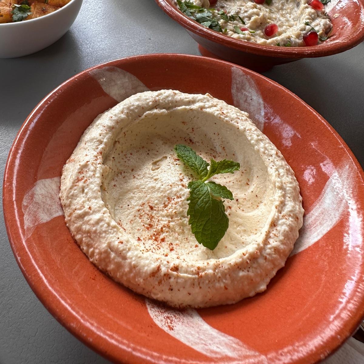 Delicious bowl of hummus, we asked them to skip the olive oil. The restaurant is great for vegans, just make sure you ask for vegan bread as the ones they make usually include cow milk!