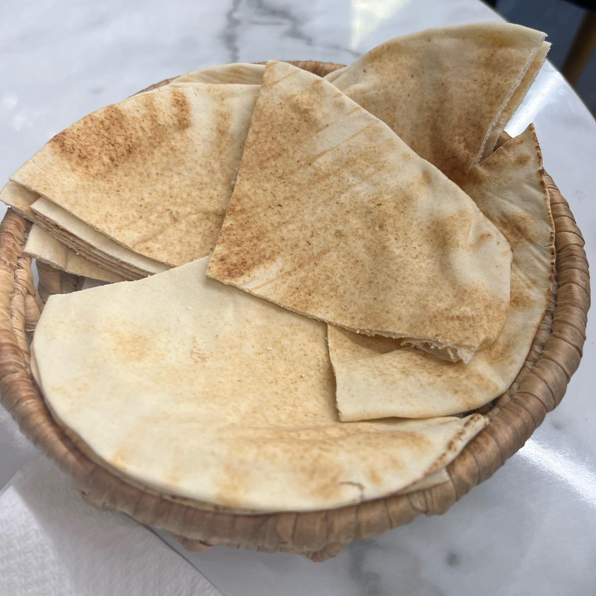 Pane pita servito con i piatti. Sottile e leggero, si può riempire a piacimento.