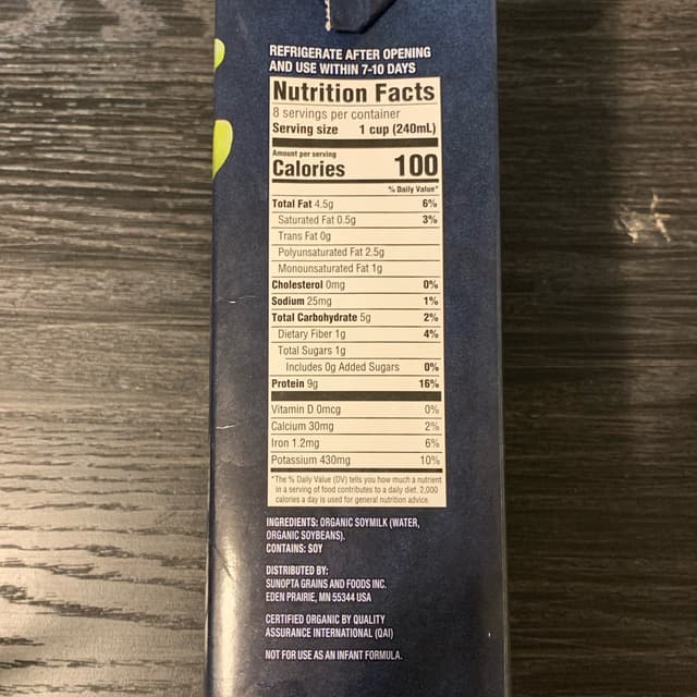 I wonder how this #soymilk can remain shelf stable without any additives 🤔 Either way, I love that there are #noadditives, consisting of only #water and #soybeans 👍🏻😊 It has 9g of #plantprotein, only 1g of sugar, 30mg of #calcium, 1.2mg of #iron and 430mg of #potassium. It’s #healthy and honestly tastes just like the soy milk in the refrigeration section with additives. Hardly any difference, just a touch thinner in consistency. Would definitely buy again 😊