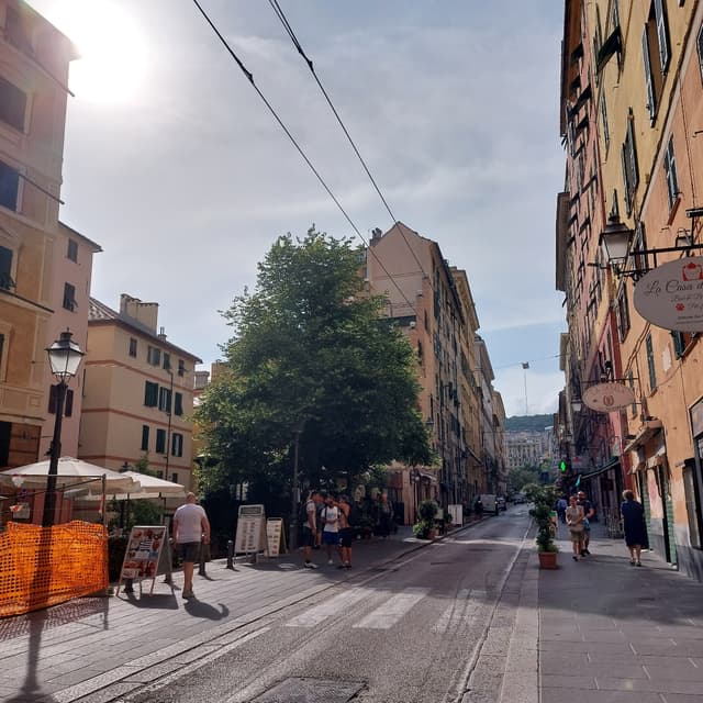 Per ricordarvi la storiella dietro a questa scoperta, cito dalla recensione precedente: Come devo aver già detto in una recensione passata, da qualche anno ormai esiste un collegamento molto comodo Zurigo-Genova Piazza Principe. Comodamente seduti in treno, dalla città oltralpe si raggiunge il capoluogo ligure in circa cinque ore. E viceversa. Il viaggio verso la Toscana e dalla Toscana in Svizzera non è mai stato più comodo, anche se forse un po' più lungo che col frastornante cambio a Milano. Infatti sia all'andata che al ritorno ho dovuto attendere la coincidenza per più di un'ora. Con i bagagli, in genere non amo uscire dalla stazione per via dell'ansia di non riuscire a tornare in tempo. Questa volta avevo però bisogno di procacciarmi del cibo e mi ero ricordata di aver visto, tempo addietro, una recensione di focacce genovesi. Ho allora consultato la fantastica mappa di @abillion10 e ritrovato una recensione di @valeveg75 che mi ha presa per la gola. La focacceria in questione è a quattro minuti a piedi dalla stazione e si trova lungo la via Balbi, che non conoscevo ed è stata una piacevole scoperta. Una via piena di colori, di locali, di gente, di vita! E quante focaccerie! Mi ero messa in testa di andare da Teobaldo, e così ho fatto. Non me ne sono affatto pentita! Ho preso una #farinata di #ceci, una #pizzarossa con le #olive e una coca cola per poco più di 7 €.
